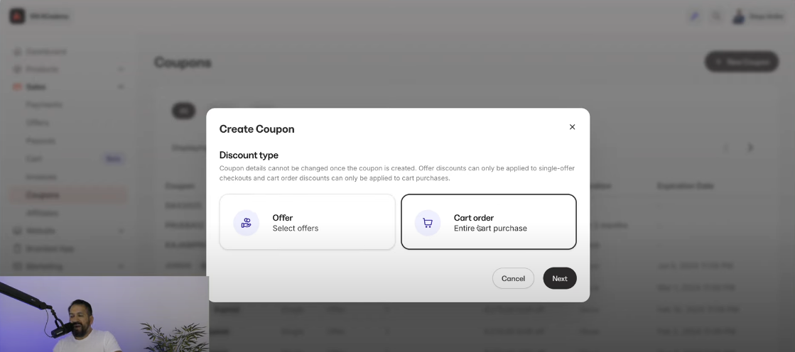 Kajabi acaba de implementar algo increíble: cupones de descuento en el carrito de compras.