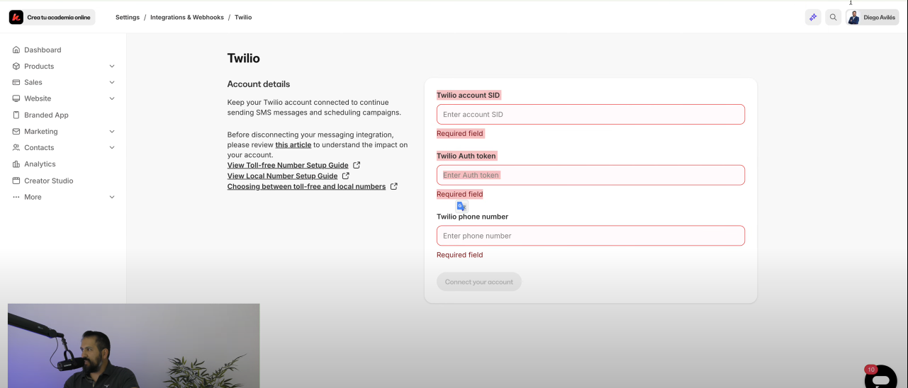 Paso 2: Conectar Twilio con Kajabi