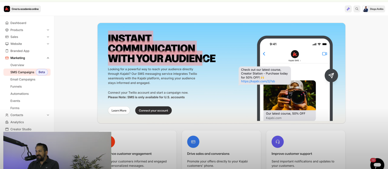 NUEVA ACTUALIZACIÓN de SMS en Kajabi en español | Cómo ENVIAR MENSAJES desde tu cuenta Kajabi 2025