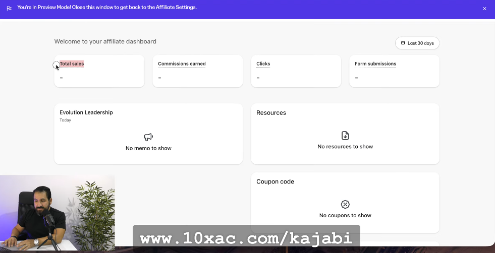 Puedes personalizar ese dashboard con un mensaje de bienvenida y hacer una previsualización del mismo. Tus afiliados verán métricas como: