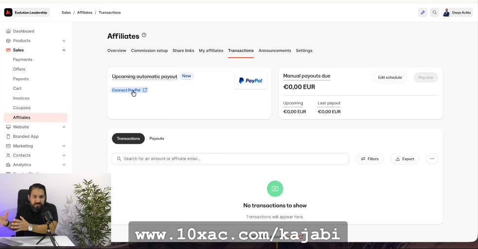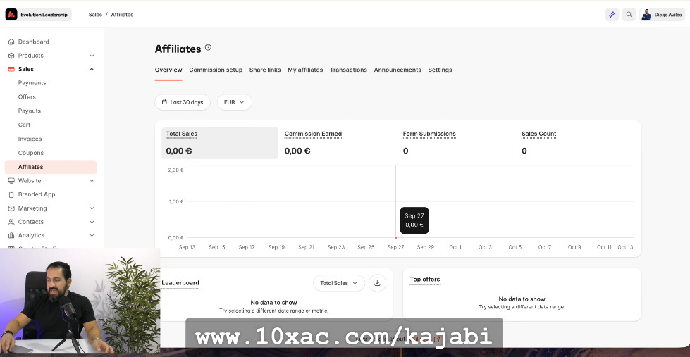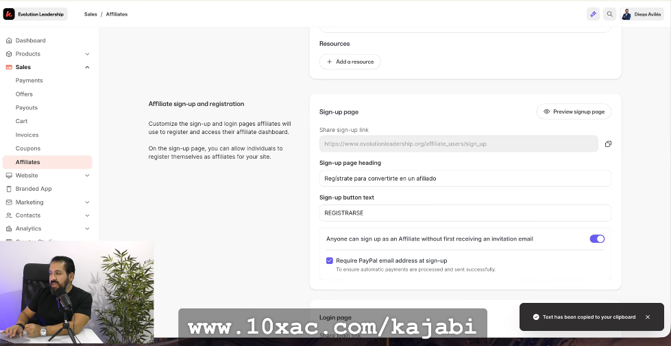 Para configurar el sistema de afiliados en tu cuenta de Kajabi, sigue estos pasos: